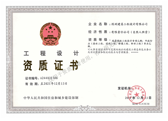 深圳建昌工程設(shè)計有限公司成立于2006年,是國家住建部批準(zhǔn)的建筑行業(yè)建筑工程設(shè)計甲級、城鄉(xiāng)規(guī)劃編制甲級、風(fēng)景園林工程設(shè)計甲級、工程咨詢甲級、工程監(jiān)理甲級及其它相關(guān)(市政工程、人防工程、勘察測量、造價咨詢等)乙級資質(zhì)單位。通過多年發(fā)展與積累,公司已建設(shè)成為資質(zhì)齊全、產(chǎn)業(yè)鏈完整、在國內(nèi)具備相當(dāng)實力的工程行業(yè)服務(wù)企業(yè)。?
