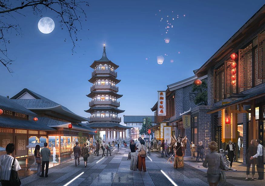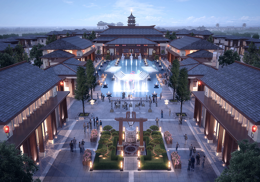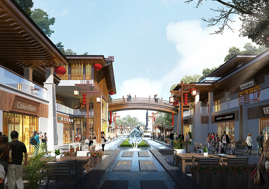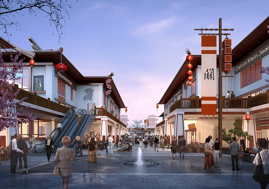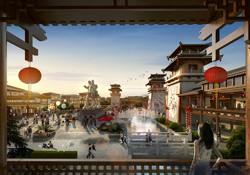 ? ? 文化商業(yè)街的設(shè)計(jì)頗具匠心,從入口處開始,至文化商業(yè)街出口處結(jié)束,整個(gè)用關(guān)羽輝煌起伏的一生為時(shí)間線進(jìn)行貫穿。如果說整條街區(qū)是關(guān)羽在世生而仁、仁而勇、勇而義、義而忠的再現(xiàn),那么從街區(qū)的出口處就是關(guān)羽侯而王、王而帝、帝而圣、圣而天文化升華的開始。讓體驗(yàn)者通過關(guān)公精神,體驗(yàn)現(xiàn)代旅游綜合商業(yè)區(qū),建設(shè)一個(gè)集餐飲休閑、旅游度假為一體的傳統(tǒng)古典園林式的商業(yè)綜合體。