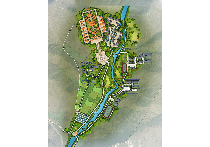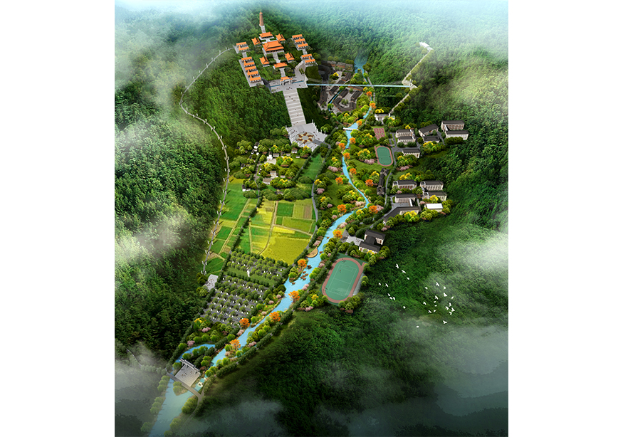 駐馬店忠國(guó)寺項(xiàng)目選址位于河南省駐馬店市,距離市區(qū)約50公里,占地面積共約30000畝,總建筑面積約8萬方。用地現(xiàn)狀自然分光、地形地貌獨(dú)特,且風(fēng)水極佳,背有高山、前有流水、位于山谷之中,藏風(fēng)聚氣。整個(gè)項(xiàng)目圍繞忠國(guó)寺以“禪行”文化展開設(shè)計(jì),規(guī)劃有六大板塊,包含忠國(guó)寺寺廟區(qū)、衡水中學(xué)駐馬店分校、文武學(xué)校、養(yǎng)生素齋館、精品民宿區(qū)、北影影視基地。同時(shí)項(xiàng)目含有萬佛大道、景觀索道、玻璃通天橋、聯(lián)姻橋、水上樂園等交通、旅游方面配套設(shè)施。
